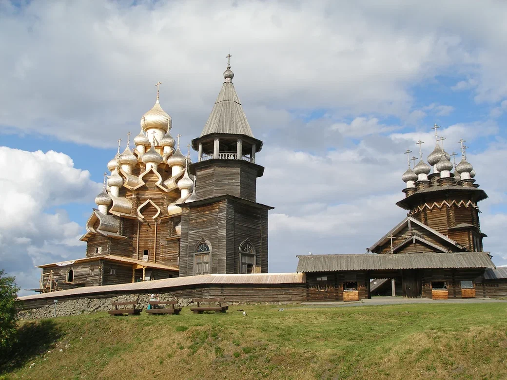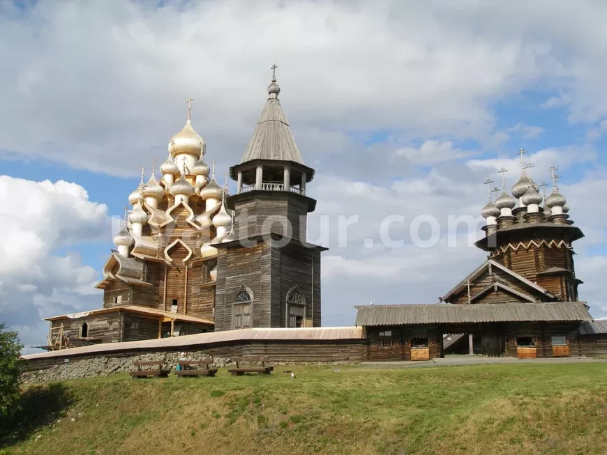 Это один из крупнейших в России музеев под открытым небом. Здесь, на живописном острове, сохранились подлинные шедевры народной архитектуры: 22‑главая Преображенская церковь – вершина плотницкого искусства, возведённая без единого гвоздя, Покровская церковь с изящным многоглавием, старинная колокольня, венчающая ансамбль, крестьянские дома, ветряные мельницы и амбары, воссоздающие облик старинного северного поселения.